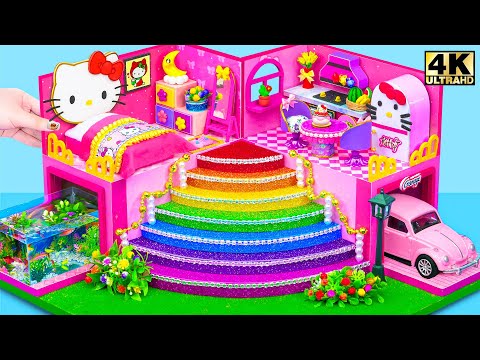 Make Miniature Hello Kitty House with Rainbow Stairs and Fish Tank for Pet ❤️ DIY Miniature House